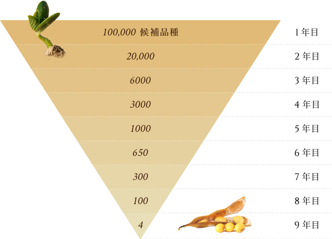 我々は現状の品質に満足することなく日々美味しい大豆を追求しています。しかし、いかに美味しい大豆を作ることが出来ても、それは農家が栽培しやすく安定供給できる種子でなければなりません。日々の種子開発は、KAPIの大豆に関わる全ての人が笑顔になるために必要なことなのです。